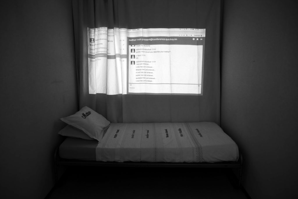 An installation and intimate chatbot performance about motherhood and what happens if a writer or artist creates a baby. This performance will be taking place in the safe space of a spare bedroom. For optimal experience a smartphone is handy but it’s no necessity.